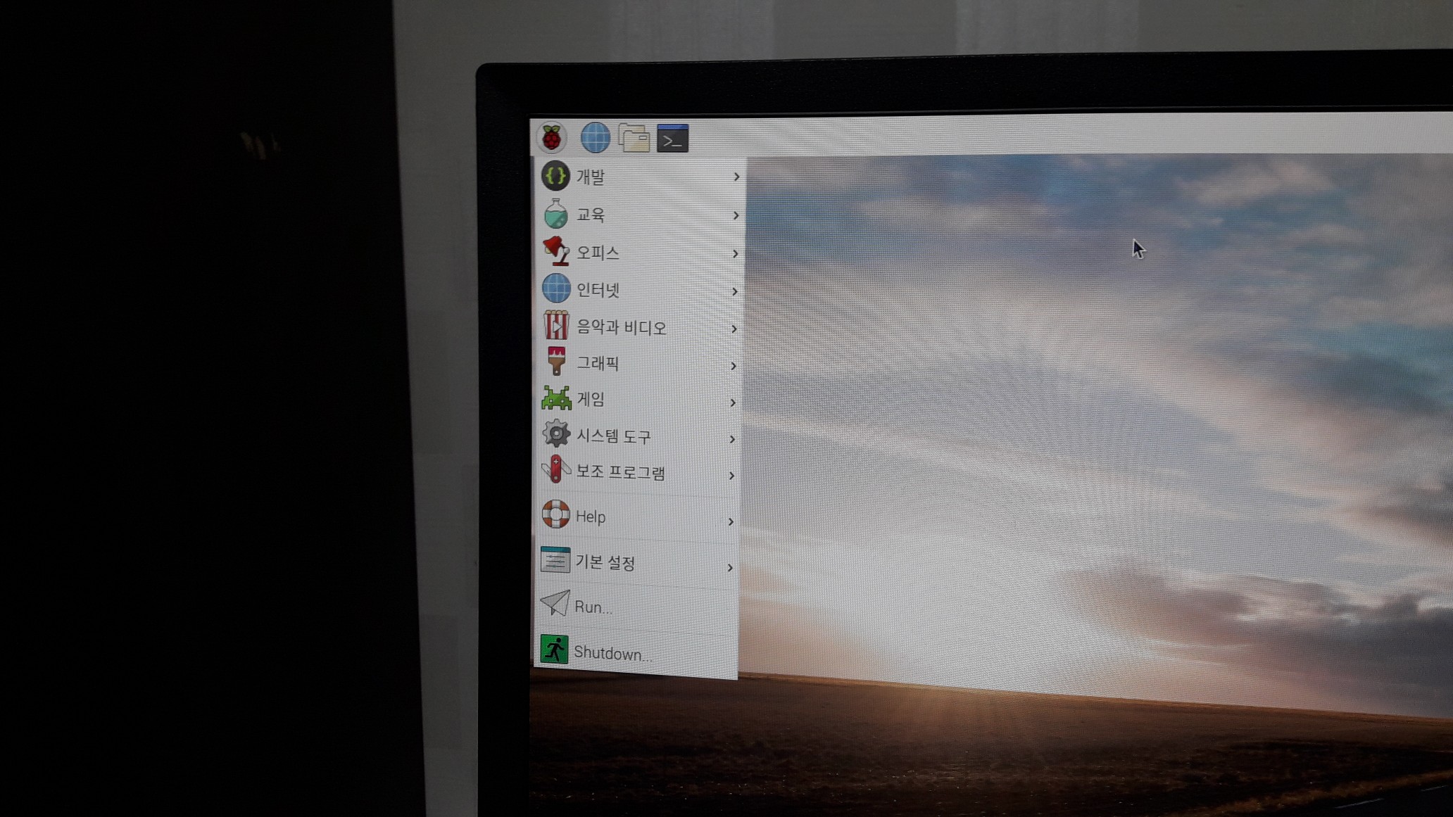 왼쪽 위 라즈베리 그림을 누르면 메뉴가 뜹니다.