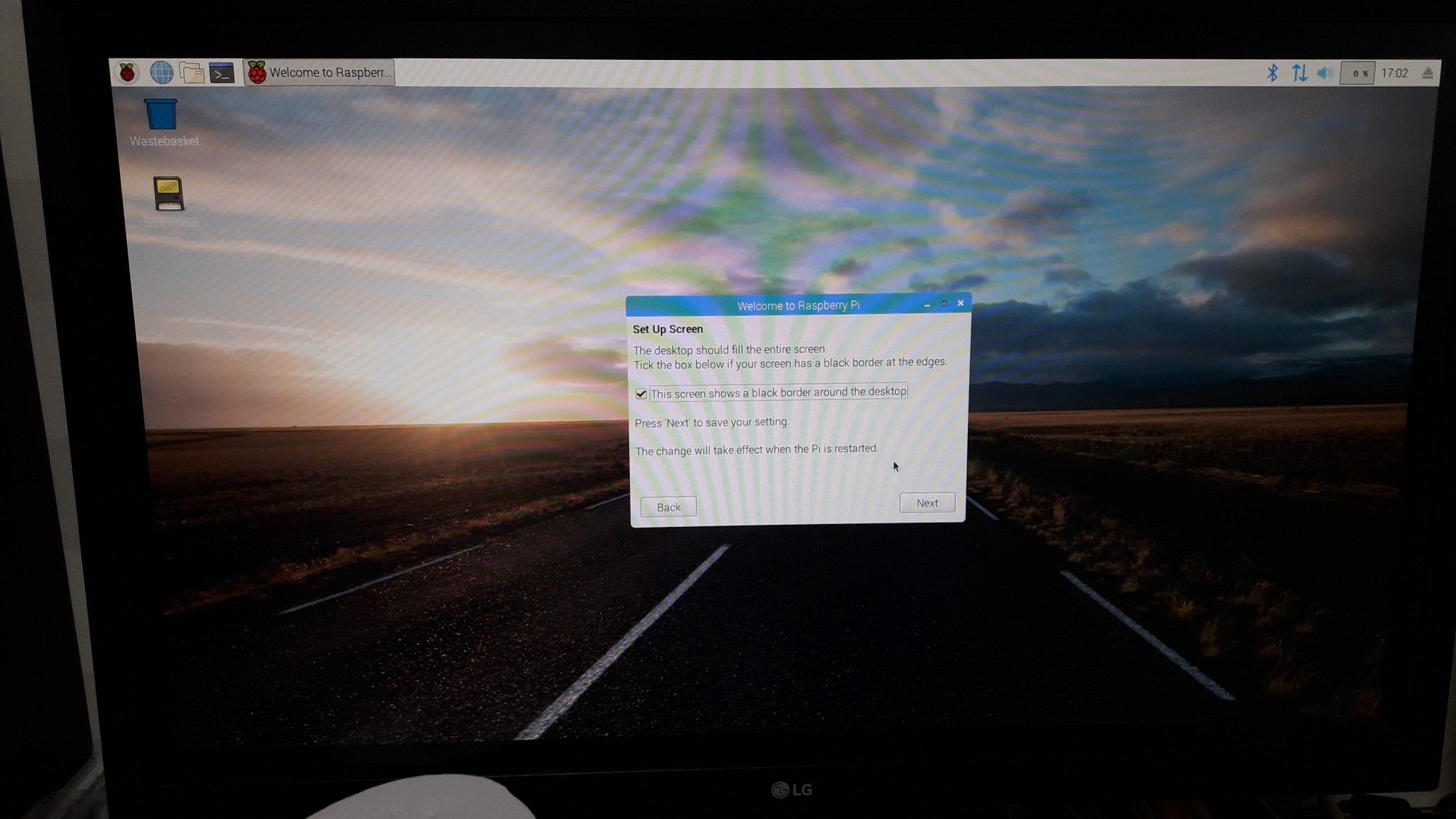 그래서 This screen shows a black border around the desktop에 체크.