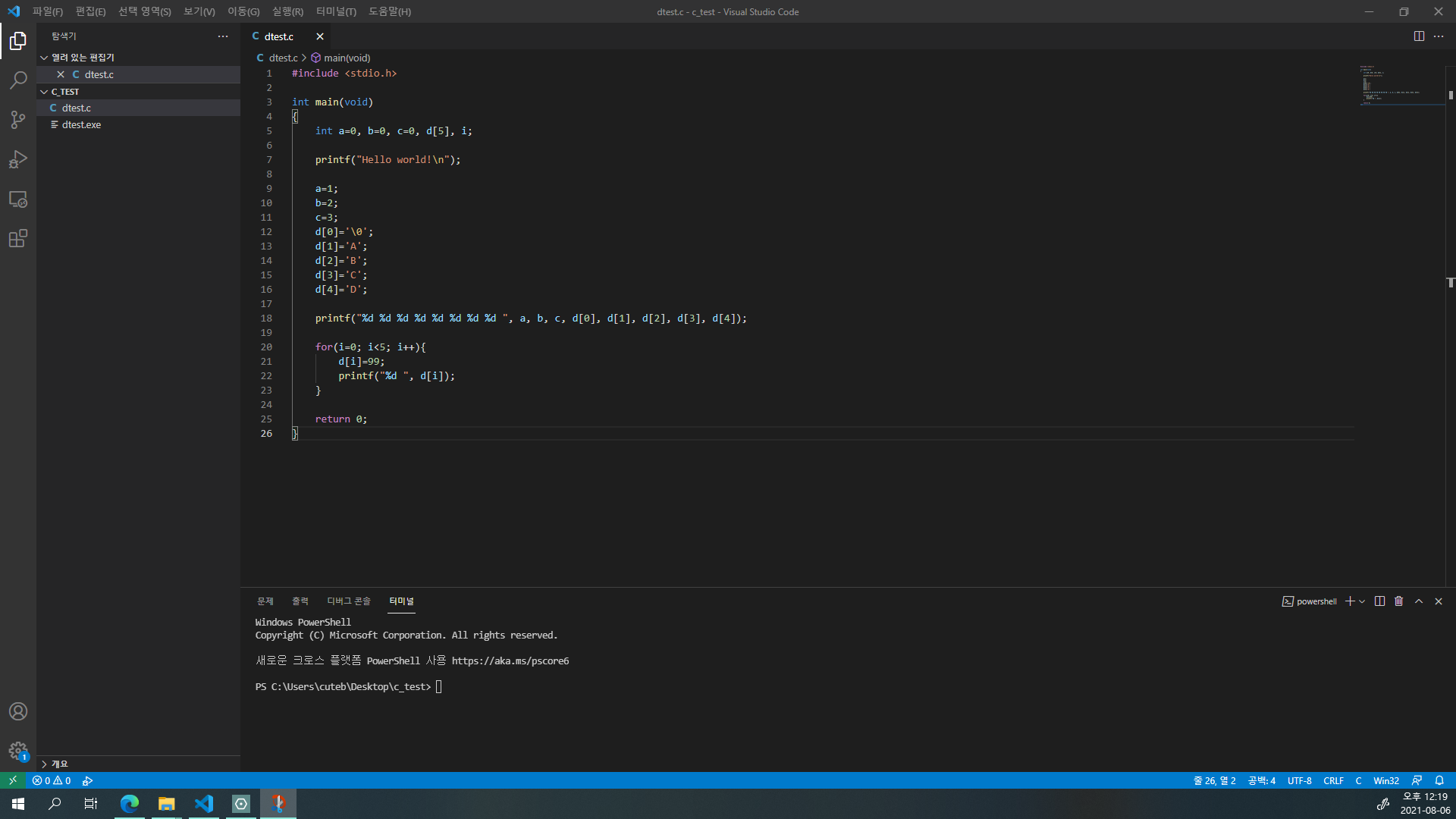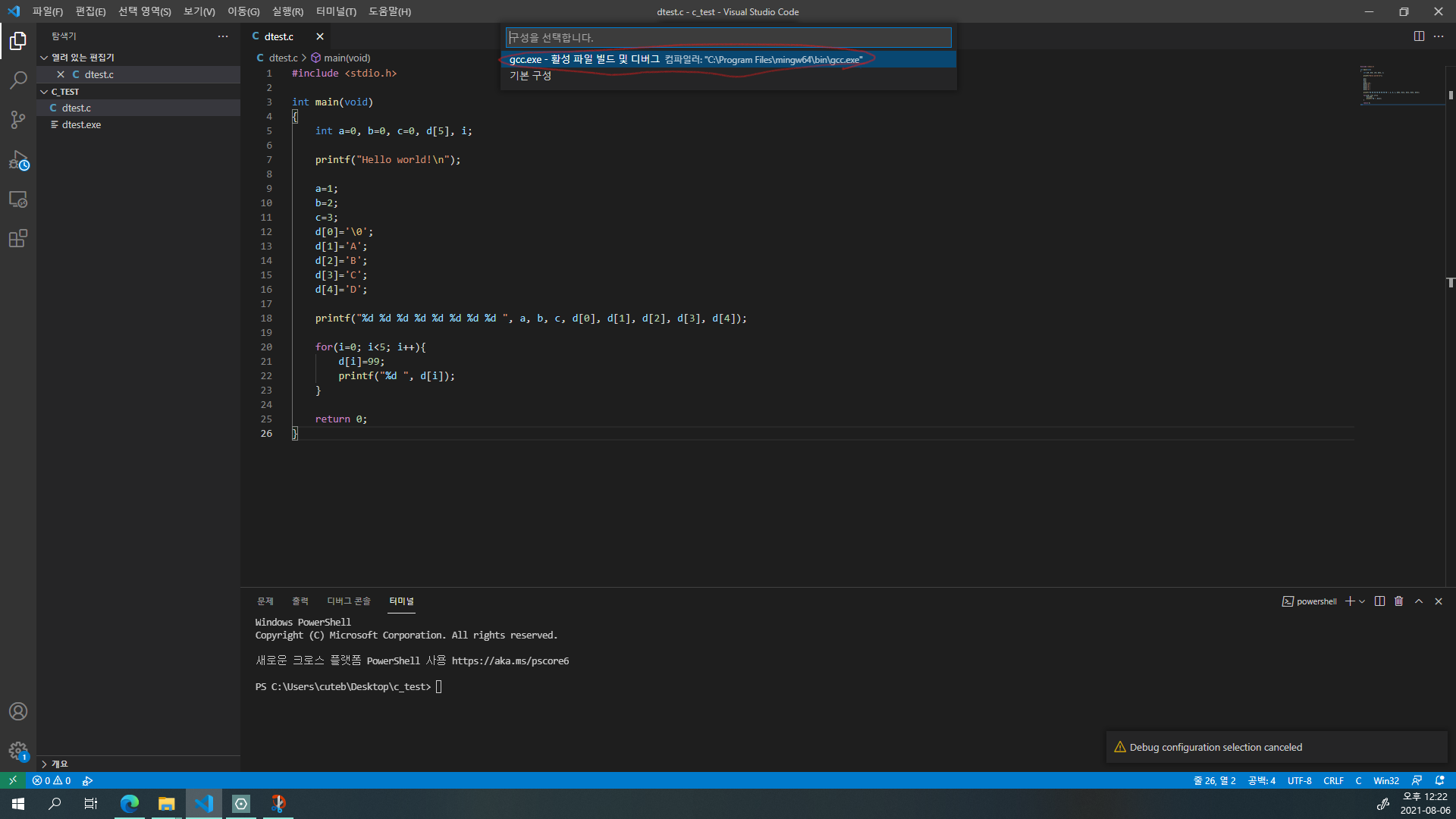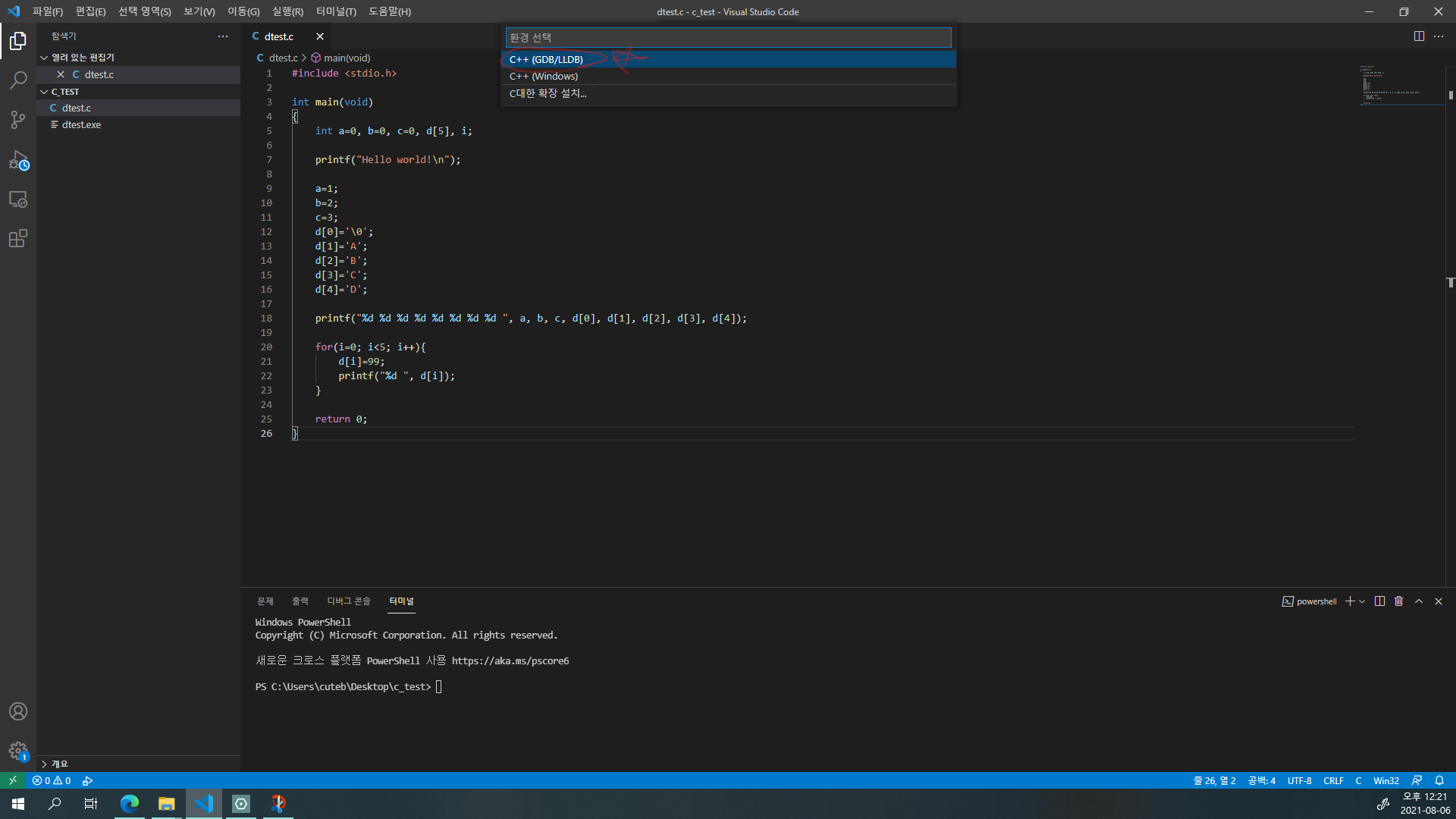 1. VScode에 C code를 띄워 놓고 F5 키를 누릅니다.