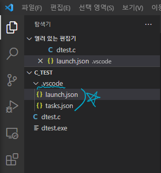 좌측 탐색기를 보시면 .vscode 폴더가 생긴 것을 보실 수 있습니다.
