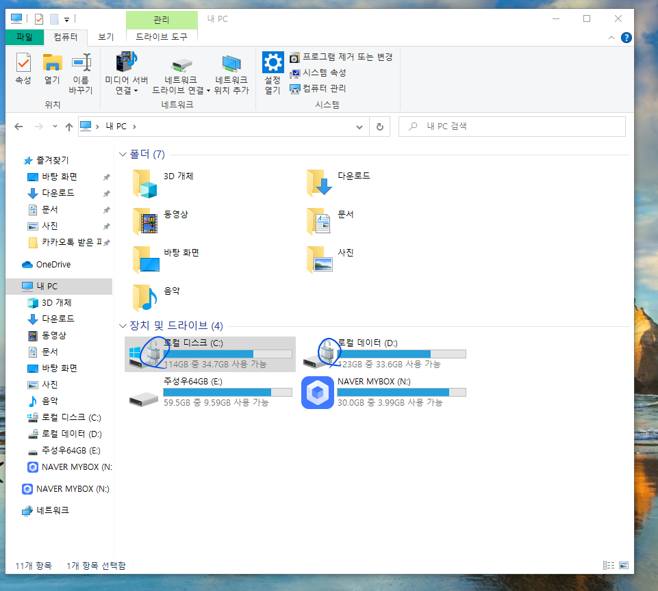 어느 날 갑자기 파일탐색기 디스크들에 나타난 자물쇠 아이콘!