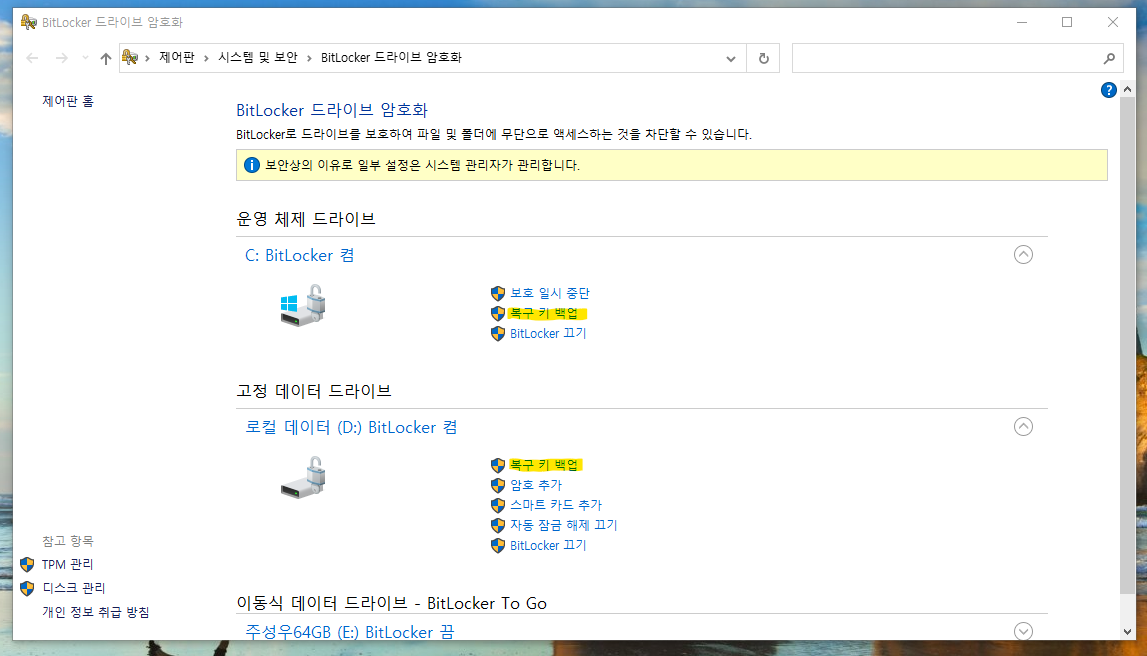 오늘은 BitLocker 복구 키를 백업하는 방법, 그리고 아예 꺼버리는 방법도 알아봅시다!