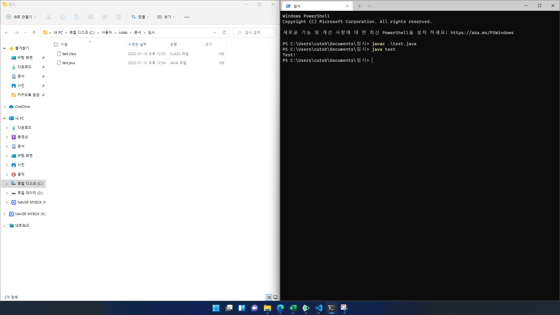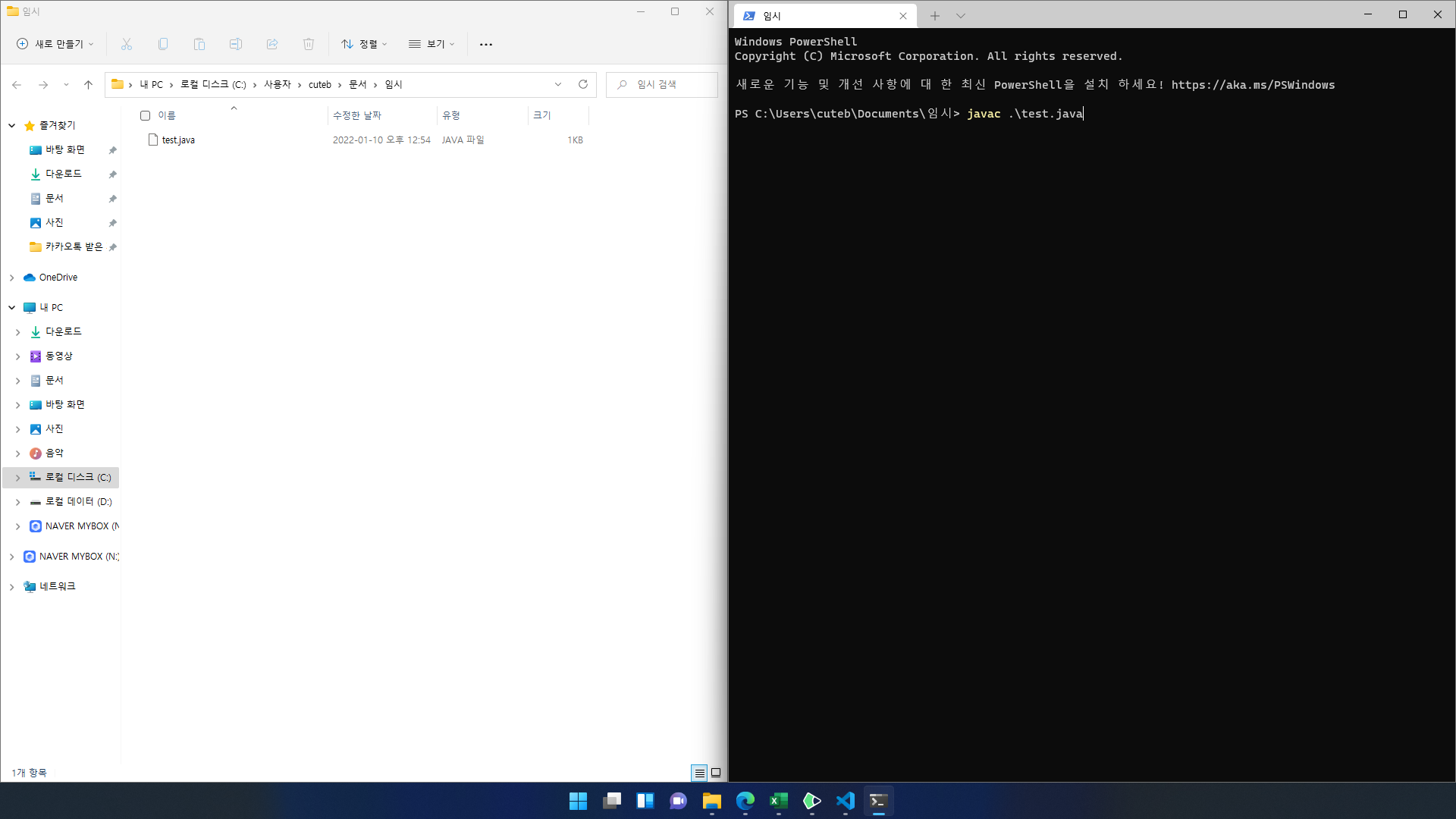 3.2. javac .\test.java 명령을 실행하면 컴파일이 됩니다.
