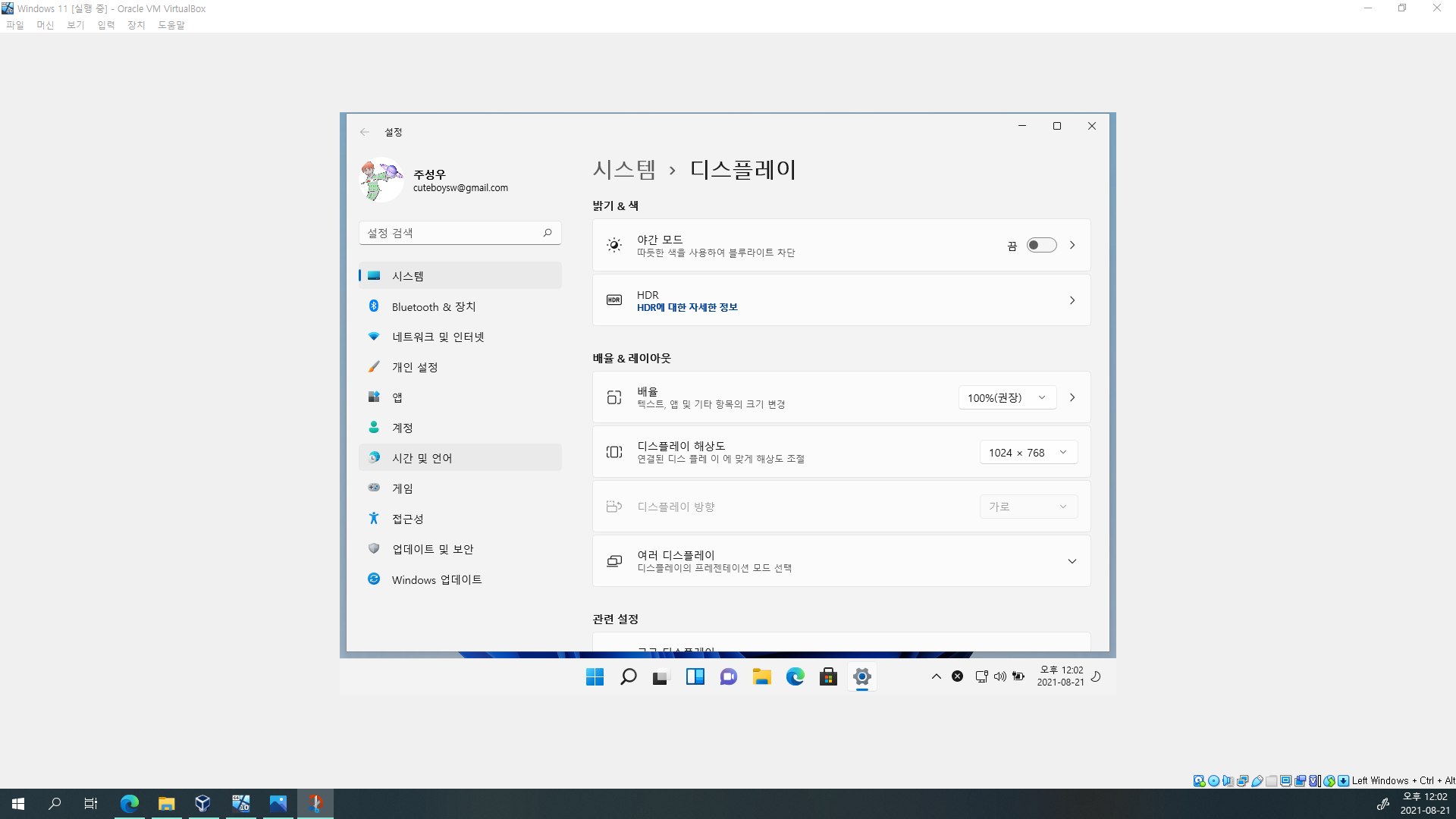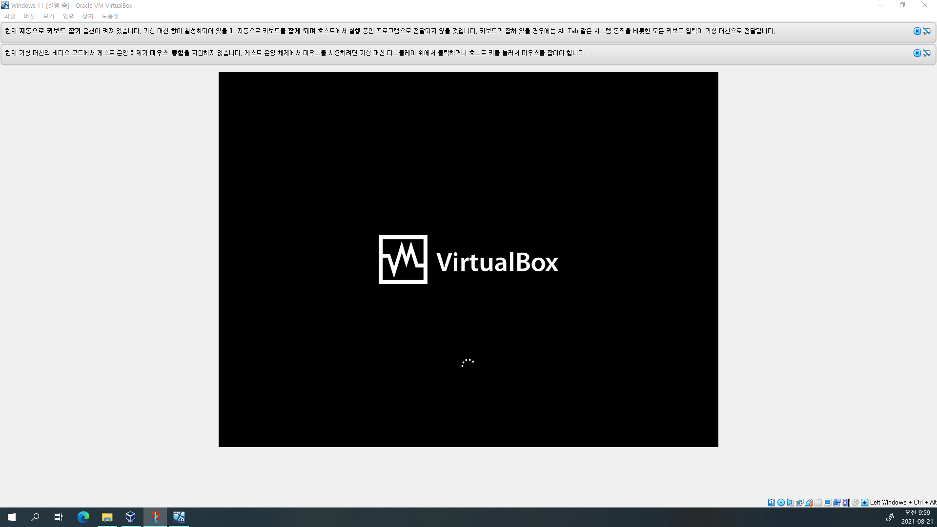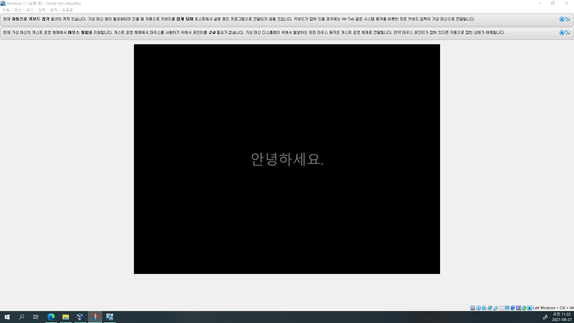 화면을 좀만 움직이시면 Windows 11이 VM 창을 꽉 채우게 됩니다.