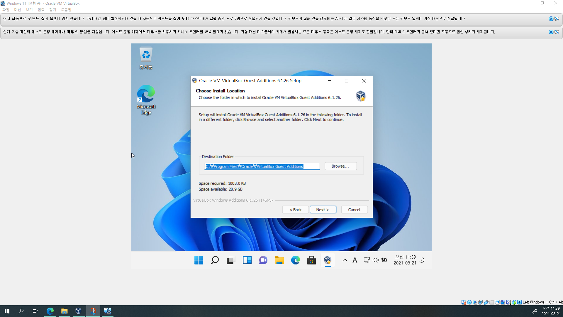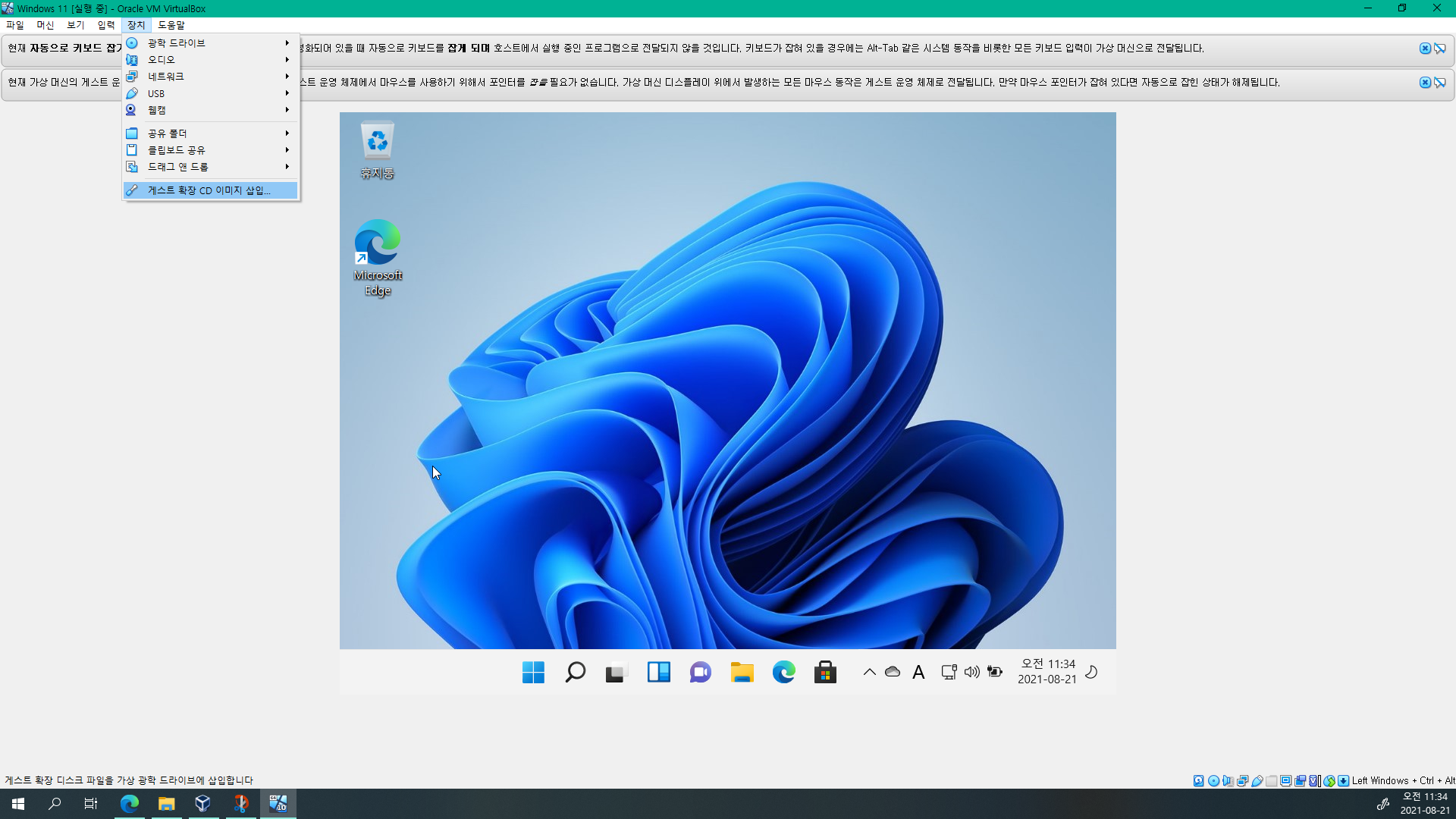 Windows 11에 게스트 확장 설치하기