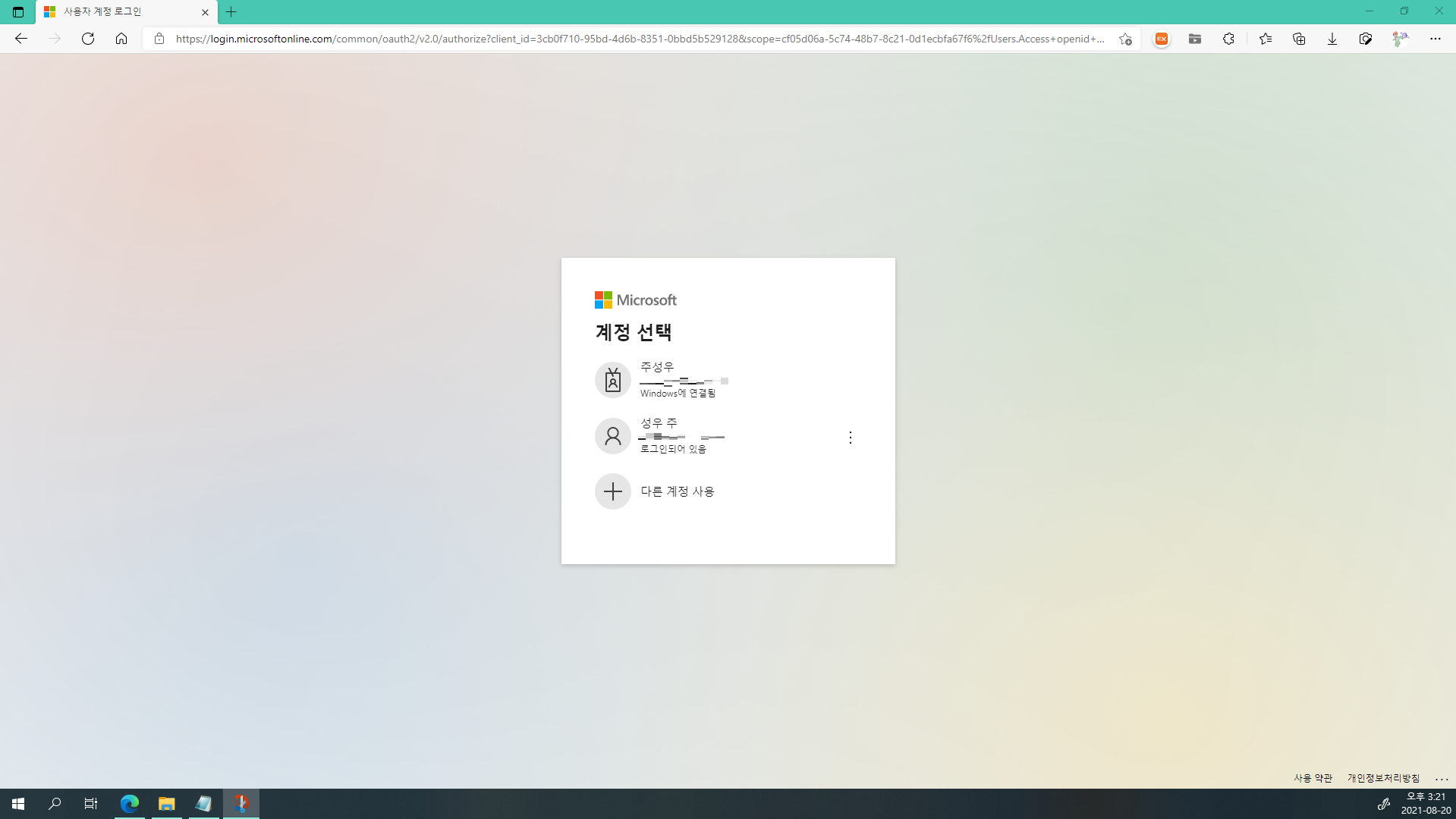 저는 계정이 2개(개인 계정, 학교 계정)라서 계정 선택 페이지가 열리네요.