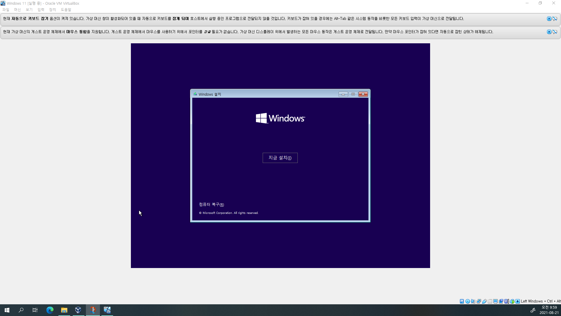 버추얼박스에 Windows 11 프리뷰 설치하기(iso 파일 이용)