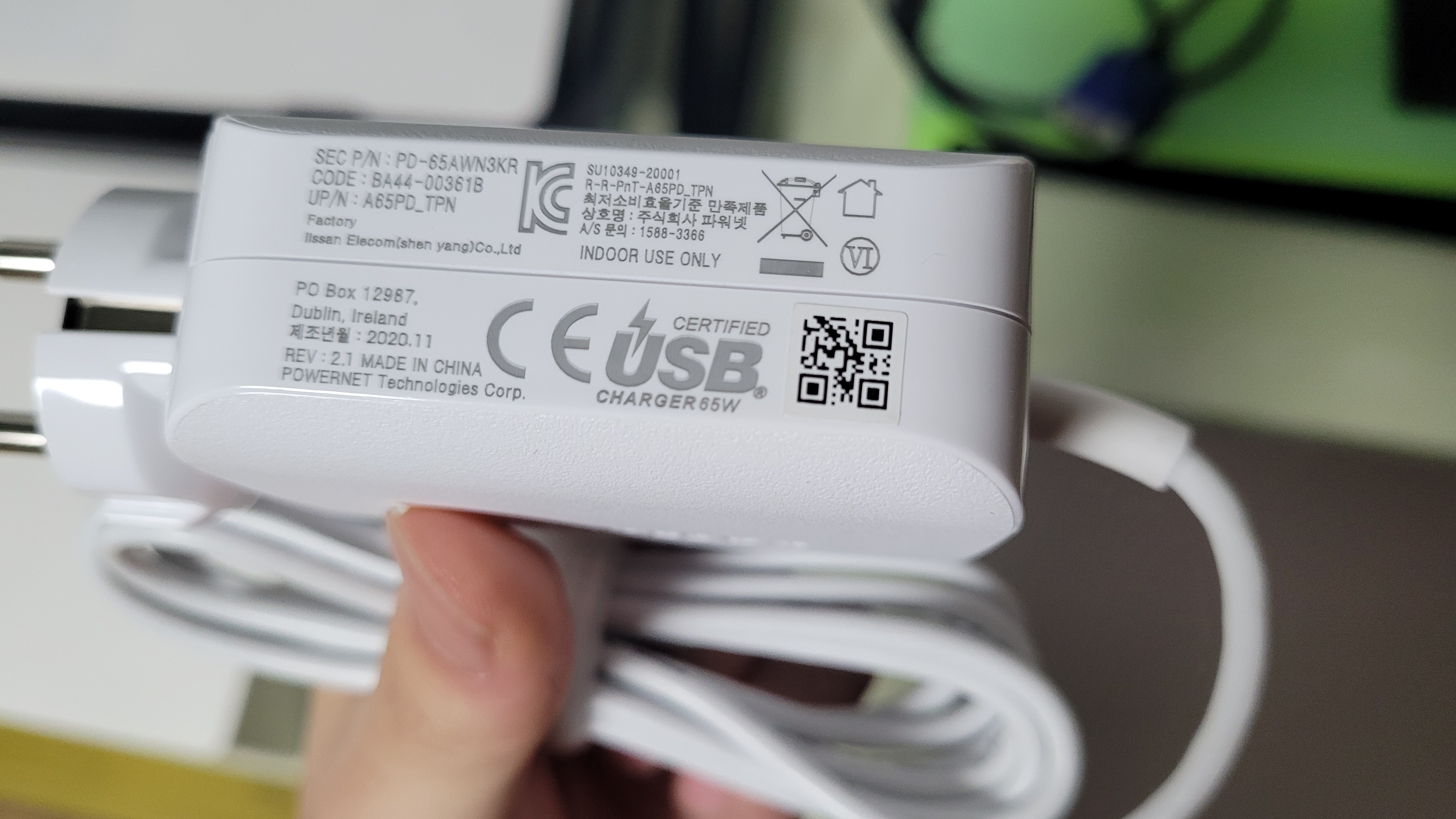 참고로 갤럭시 북 Flex2의 정격 입력은 20V 3.25A (P=65W)라고 합니다.