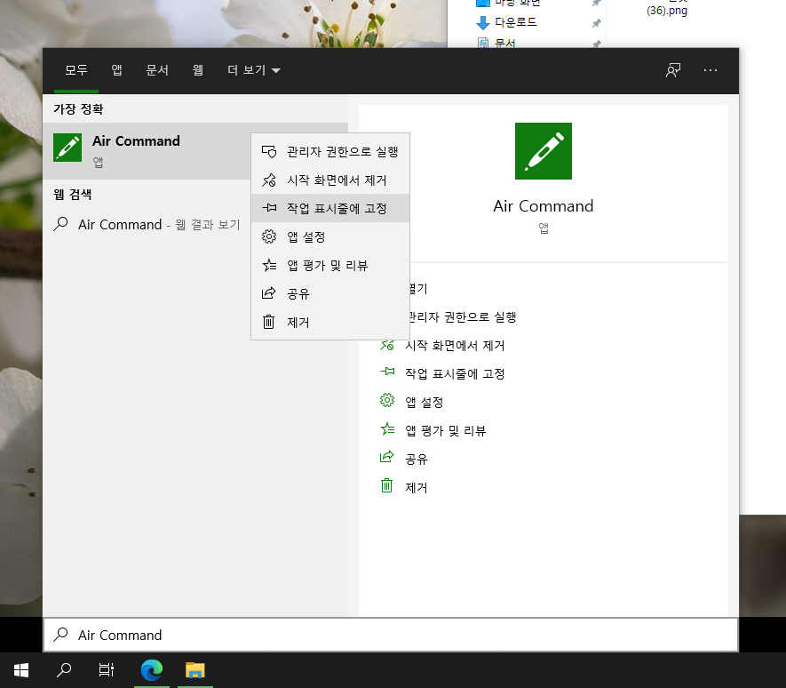 Air Command를 작업 표시줄에 고정하시면