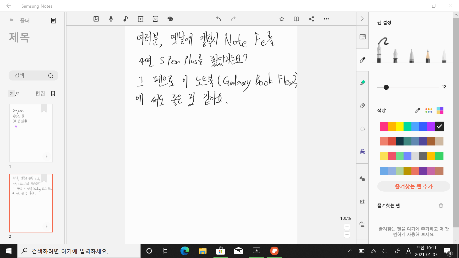 위의 'S-pen'이라는 문구와 그 아래 문구들이 굵기가 확 다른 이유는 중간에 제가 펜 설정을 바꾸었기 때문입니다.