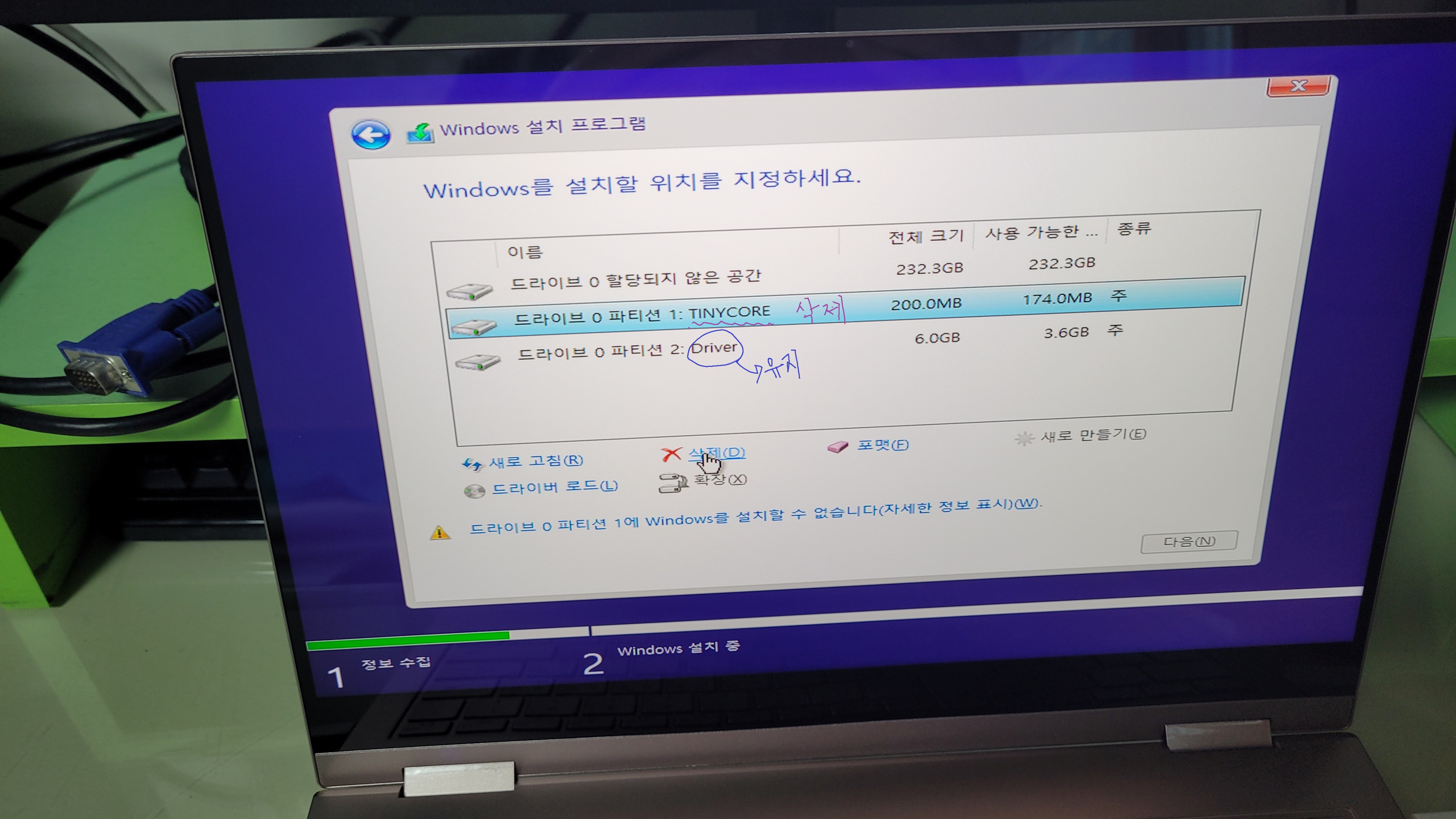 드라이브 0 파티션 4: Driver - 원래 있는 파티션. 6번 과정에서 유지하라고 한 그겁니다.