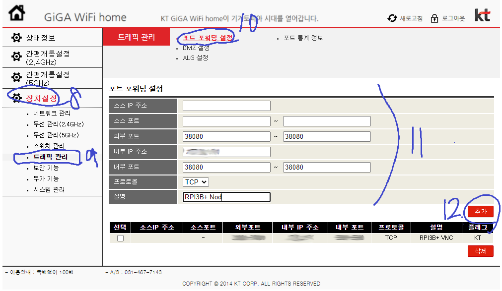 KT 공유기(Giga Wifi Home) 포트포워딩