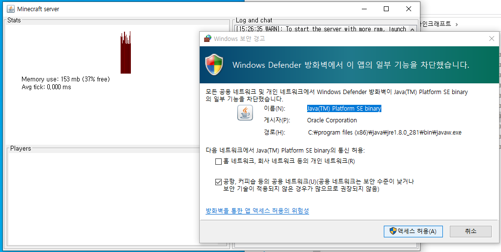 이때, 방화벽 경고창이 뜰 수 있는데 액세스 허용을 눌러 주시기 바랍니다.