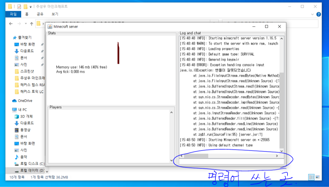 6. 이제 서버를 본격적으로 열어 봅시다. 이번에는 배치 파일(*.bat)을 만들어야 합니다.