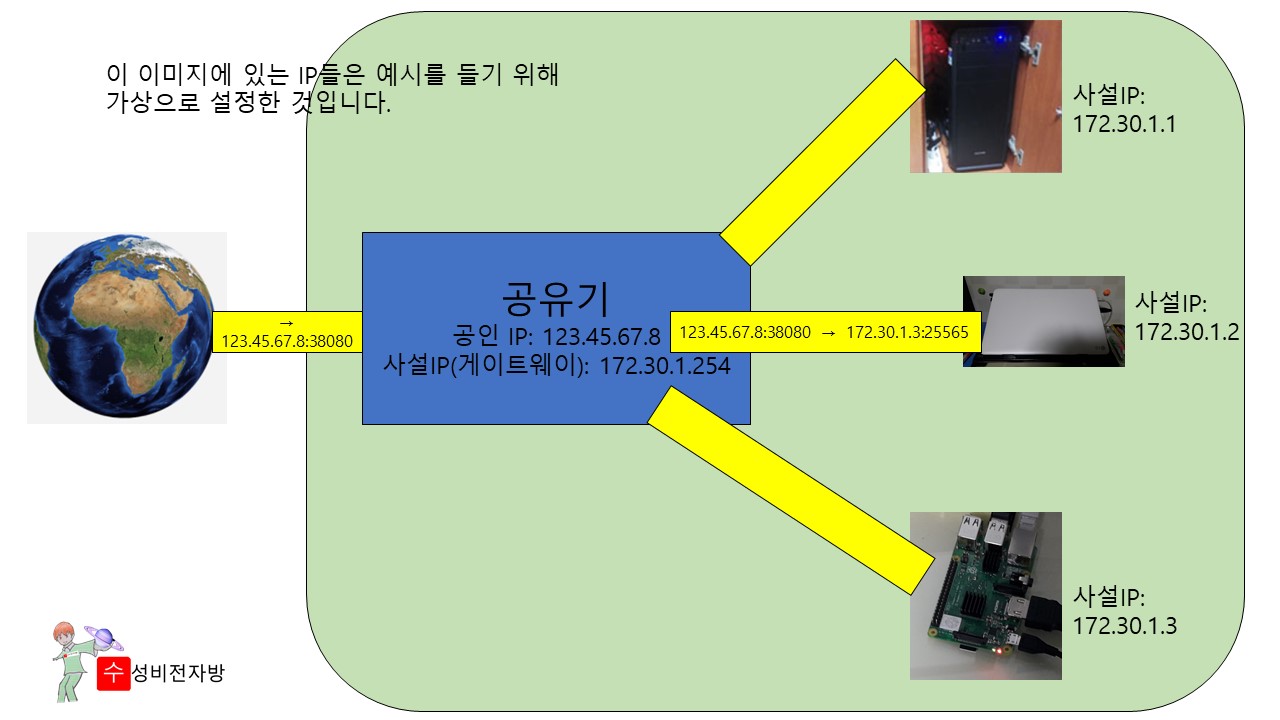위에 본인의 공유기가 없을 경우 인터넷에 공유기 이름을 검색해 보면 포트포워딩 하는 방법이 나오므로 검색해 보시기 바랍니다.