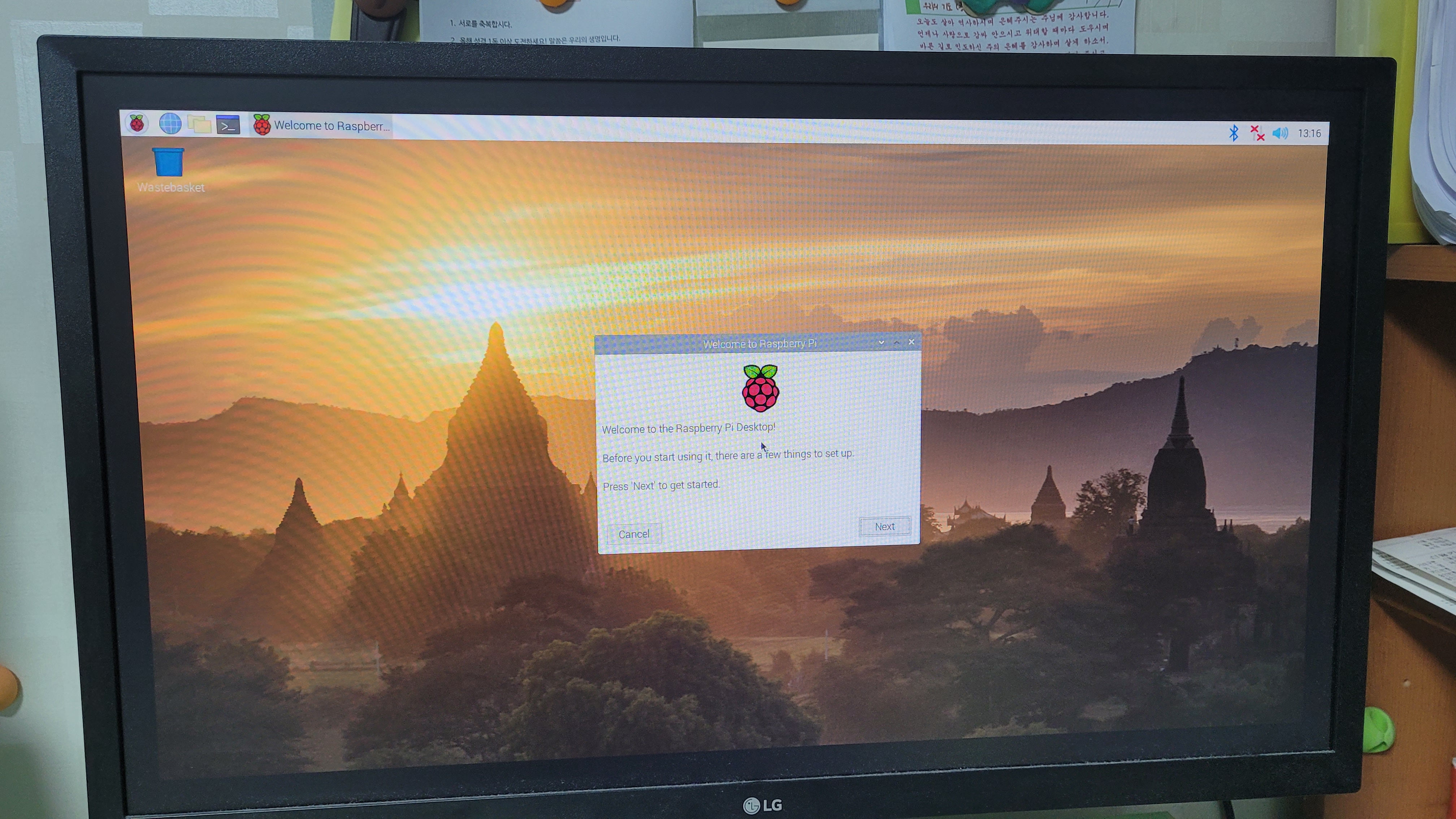 12. 라즈베리파이3 B+에 USB 허브(마우스, 키보드), 유선랜, HDMI, 그리고 방금 만든(?) Micro SD를 꽂은 다음, 전원선을 꽂으면 부팅됩니다.