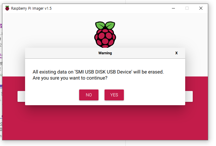 10. SD 카드가 포맷된다고 합니다. YES를 클릭합니다.