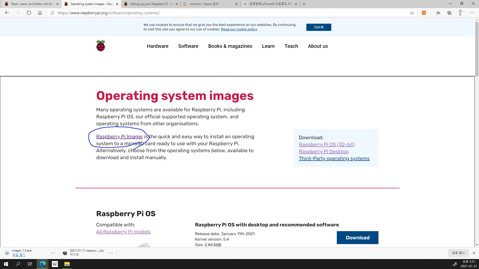 3. Raspberry Pi Imager를 클릭하세요. Raspberry Pi Imager는 라즈베리파이에 설치할 수 있는 각종 운영체제를 내려받아 설치해 주는 프로그램인데, img 파일이나 zip 파일을 내려받는 것보다 빠른 것 같습니다.