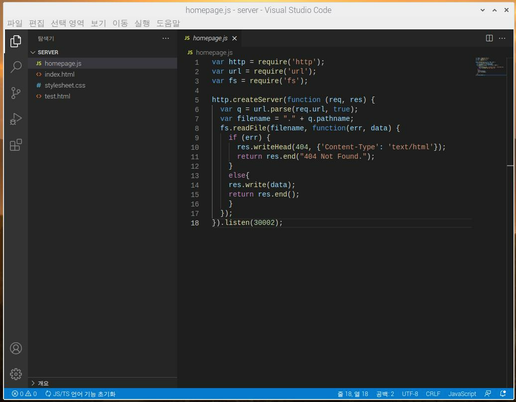 다만, Visual Studio Code를 처음 써 보시는 분들께는 이 화면이 어색할 지도 모르겠는데,