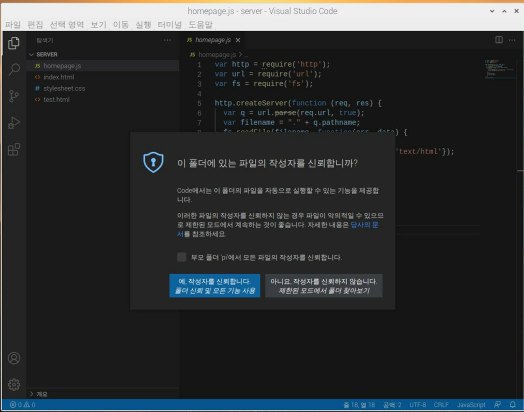 [이 폴더에 있는 파일의 작성자를 신뢰합니까?]