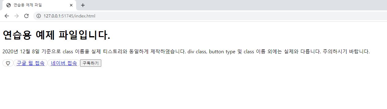 실제 티스토리 공감 버튼도 그렇고, 제가 첨부해 드린 예제 파일도 그렇고 공감 버튼은 <div class="container_postbtn #post_button_group">와 </div> 사이에 들어 있습니다.(여기서 말하는 '실제 티스토리'는 2020년 12월 8일 기준으로 개발자 도구를 이용하여 확인했습니다.)