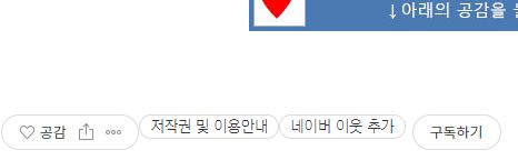 이 방법은 특수합니다. 원래 티스토리 공감, 구독 버튼이 치환자가 따로 제공되지 않고 본문 치환자로 퉁쳐지는데요. 그렇기 때문에 공감 버튼과 구독 버튼 사이에 자신만의 버튼을 넣기가 까다롭습니다.